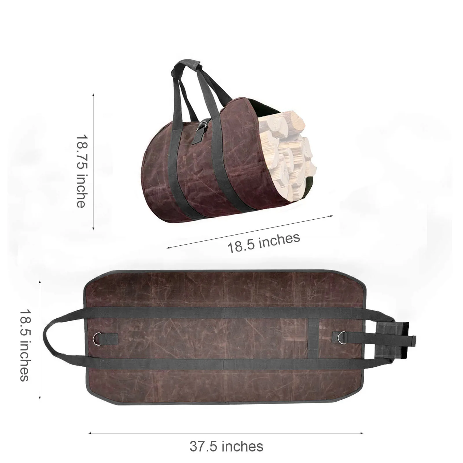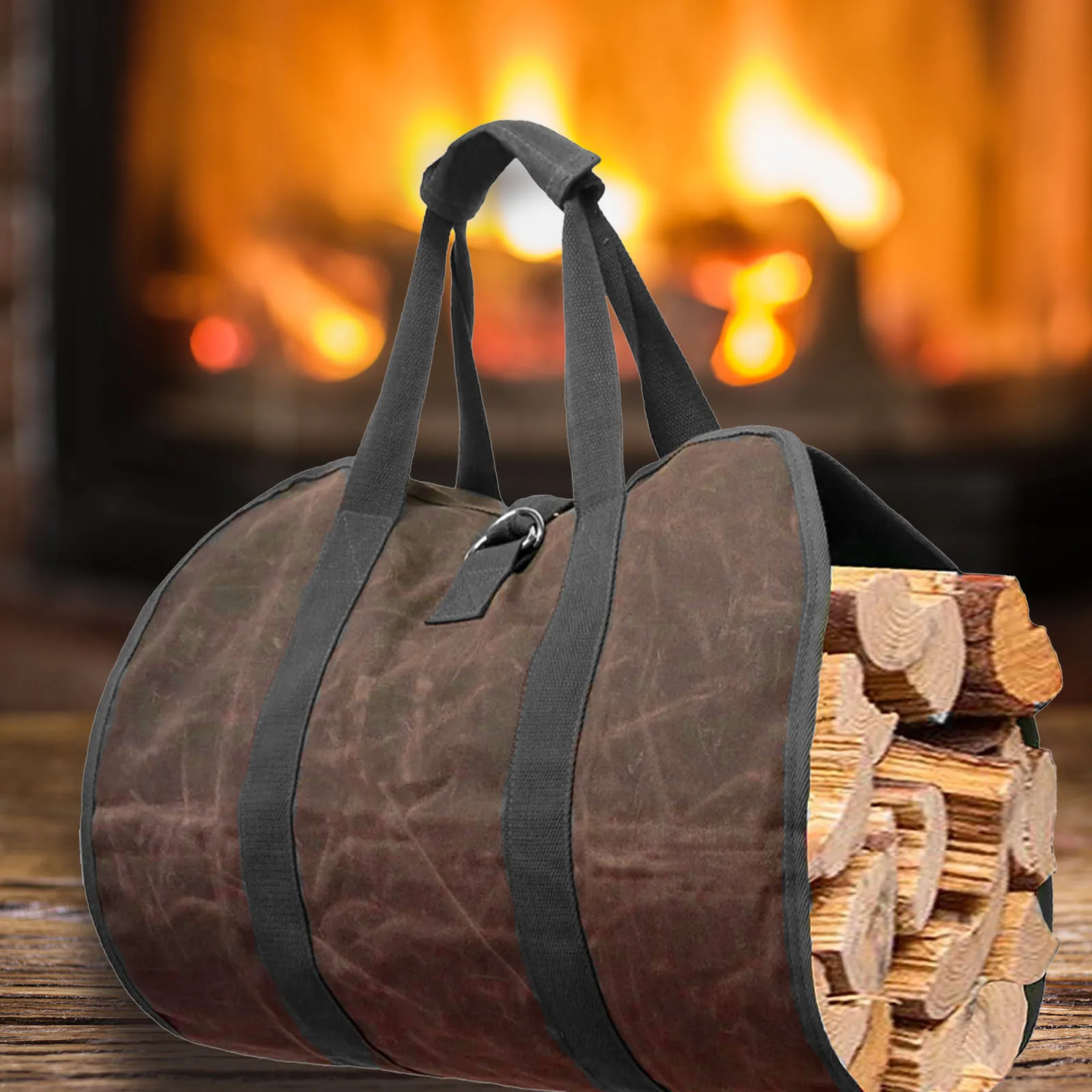 Heavy-Duty Canvas Log Carrier Bag – Supersized Firewood Tote for Fireplace, Wood Stove & Outdoor Storage